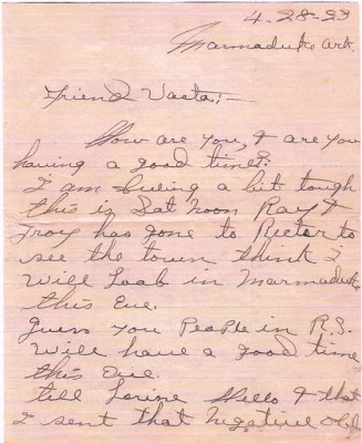 I am feeling a bit tough this Sat noon. Ray & Troy has gone to Rector to see the town. Think I will loaf in Marmaduke this eve.